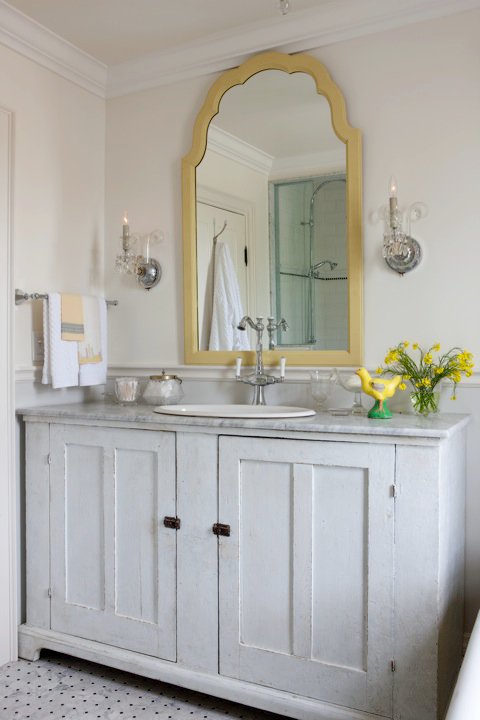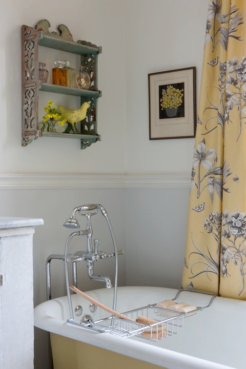 Her ‘jumping off point’ for the bathroom was the yellow fabric used in the drapes.