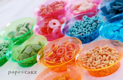 Candy grouped together by colour and placed in small bowls looks adorable & tasty too.