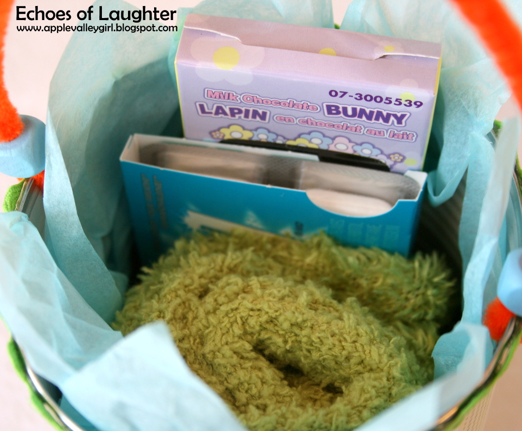 6.When finished, line the inside of the basket with tissue paper and fill with little treats!