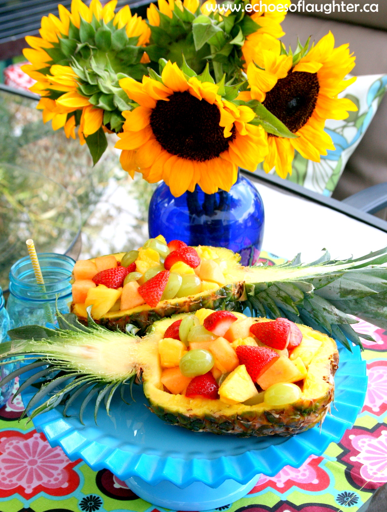 Did you know that one of my favourite desserts during the dog days of summer heat is just a simple fresh fruit salad? It’s cool, delicious, requires no baking, and it doesn’t melt, which are all great advantages in the humid heat of summer. And a fruit salad served inside a hollowed out fruit shell makes it all the more appetizing and beautiful to look at.
