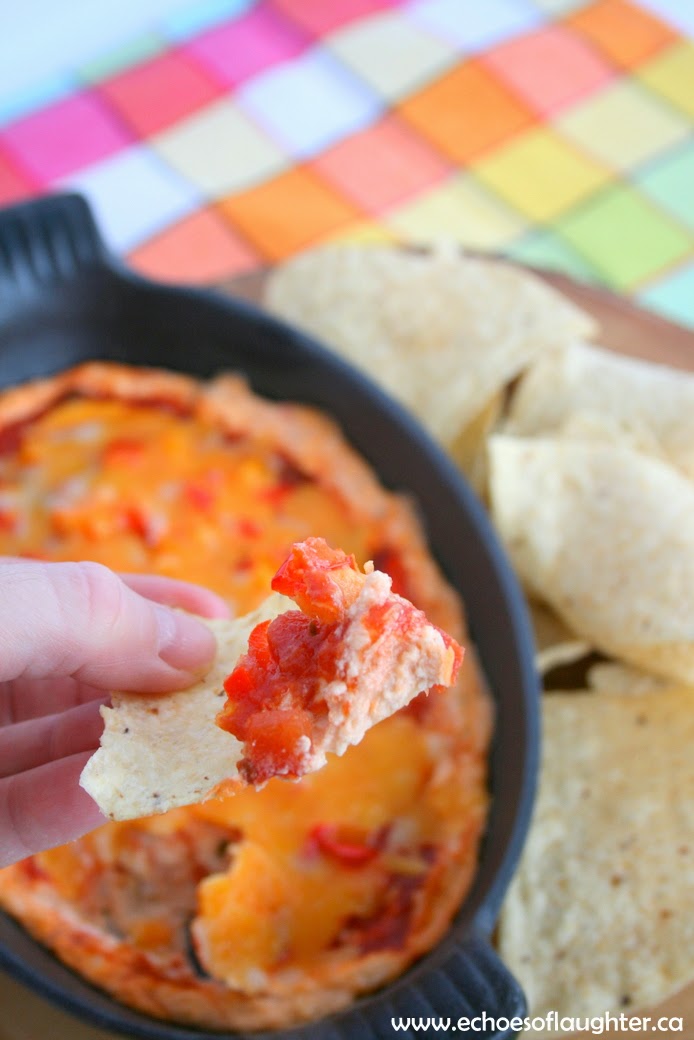 If you love fajitas and pizza, this dip is so good and perfect for some casual fun with family or friends. You could even make it earlier in the day and refrigerate until ready to go in the oven.